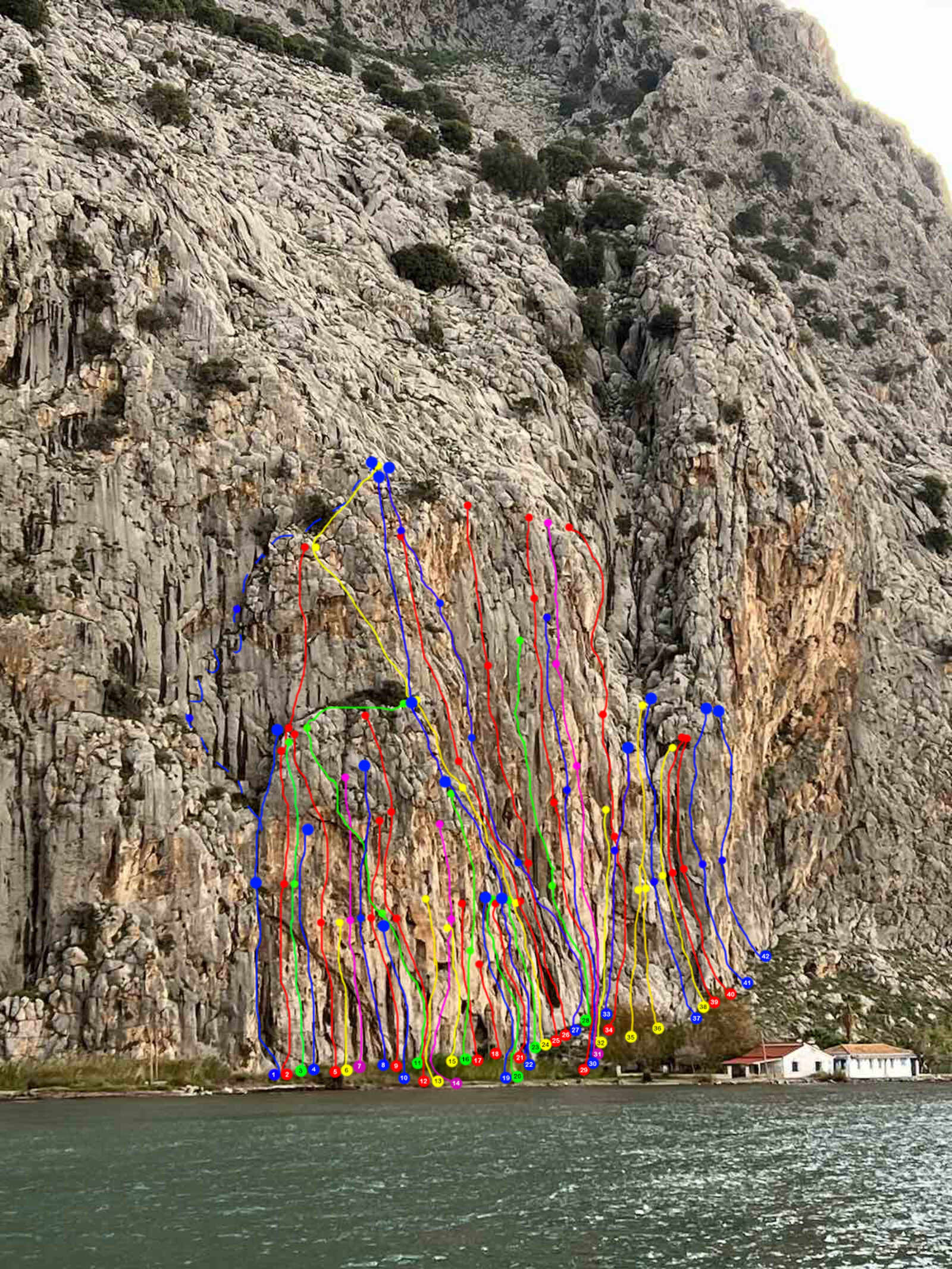 From Kryoneri, follow the main trail to the Tower sector, below the chapel of Saint Nicholas.
